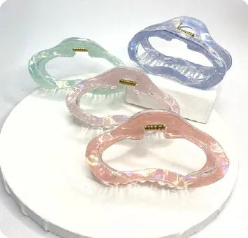 Gancho para el cabello con diseño de nube y acabado tornasol en tonos pastel. Un accesorio moderno y delicado que sujeta tu peinado con firmeza mientras aporta un brillo único y elegante a tu estilo.